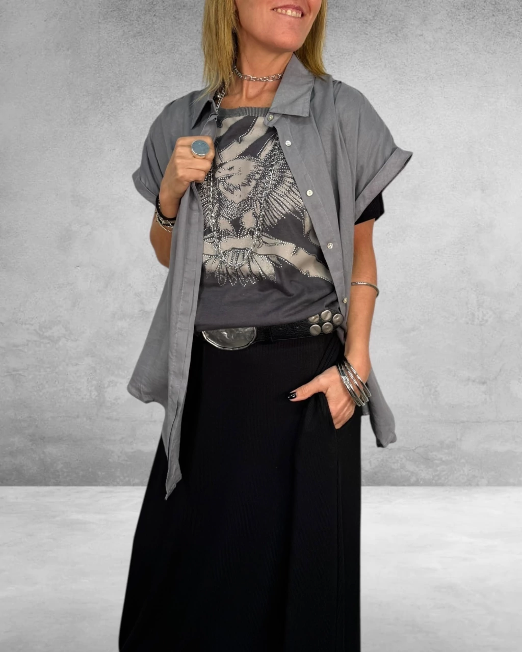 La Camisa Adela es una prenda infaltable en tu guardarropa de verano. Confeccionada en lino suave y respirable, esta camisa de manga corta se destaca por su corte relajado y botones en la delantera, que le aportan un toque moderno y sofisticado. Perfecta para looks frescos y versátiles, la Camisa Adela es ideal tanto para el día como para la noche.