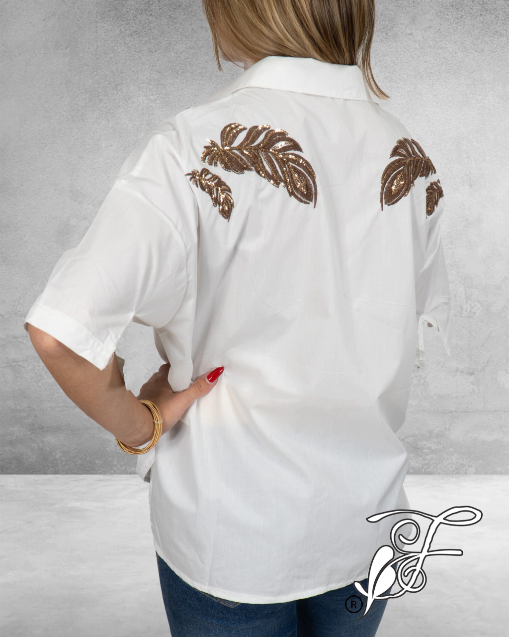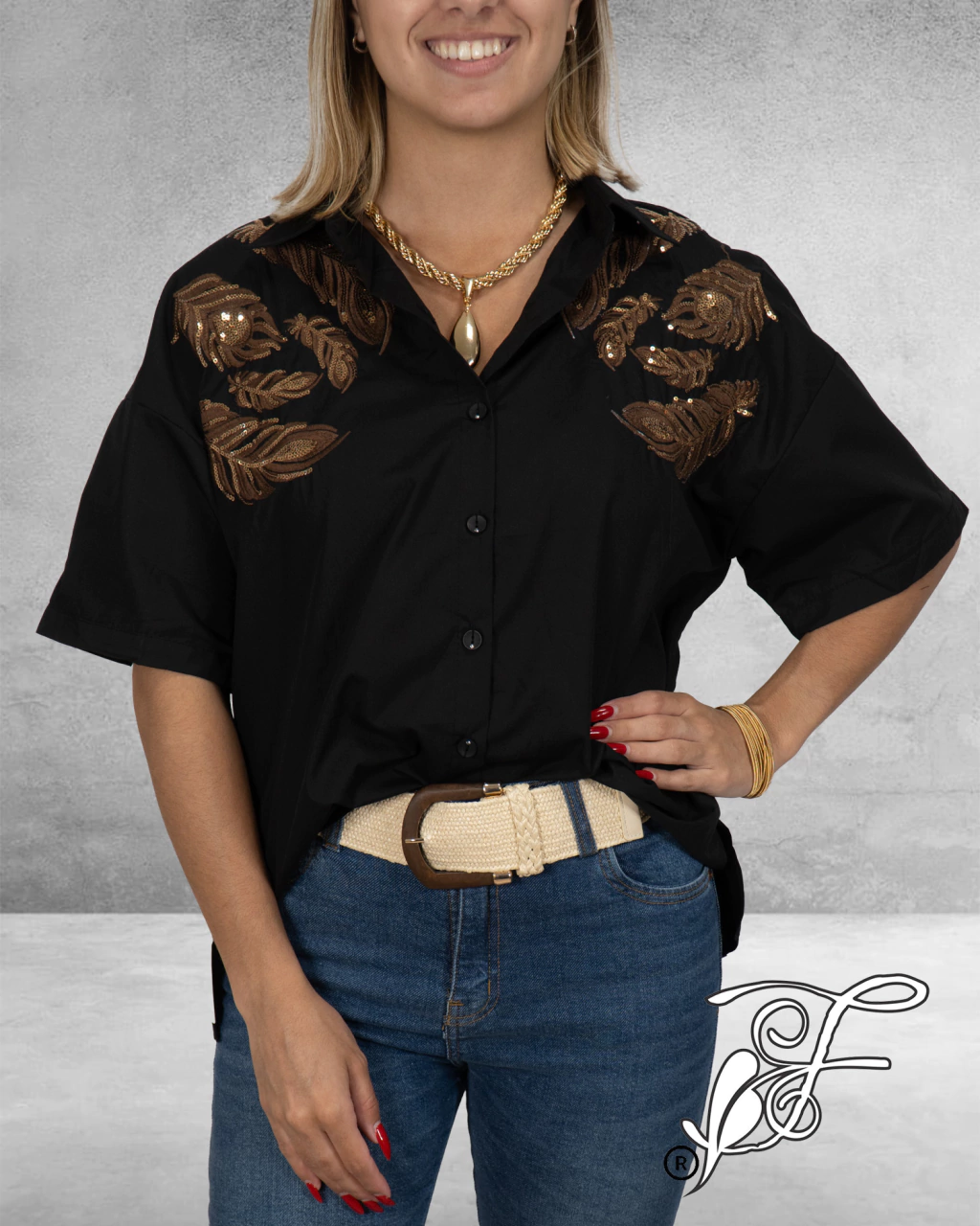 Camisa de fibrana bordada, abarca hasta un talle L. Una prenda ideal para usar cerrada o abierta con nuestros bodys debajo.