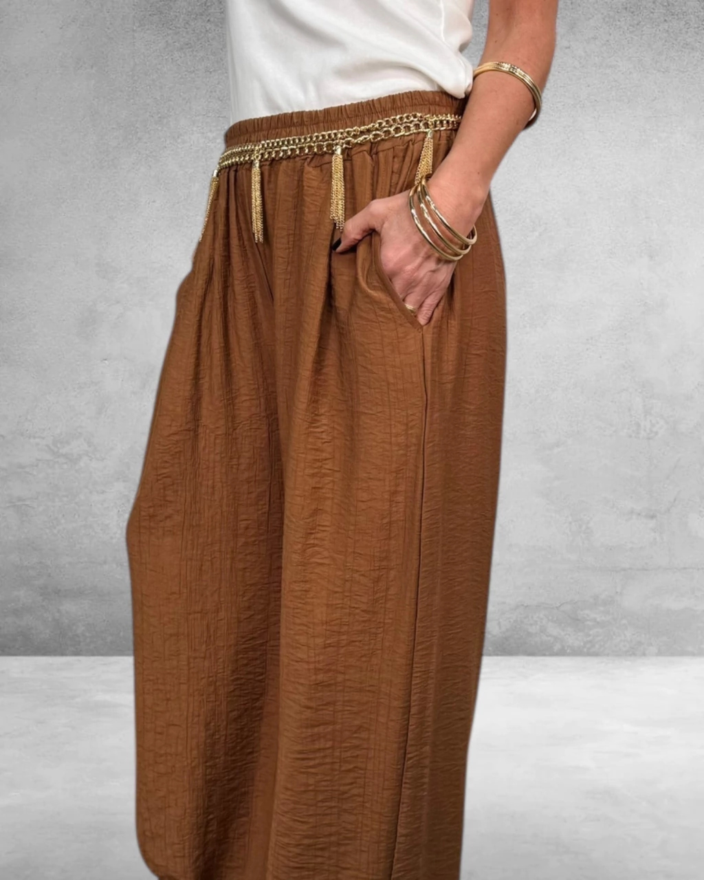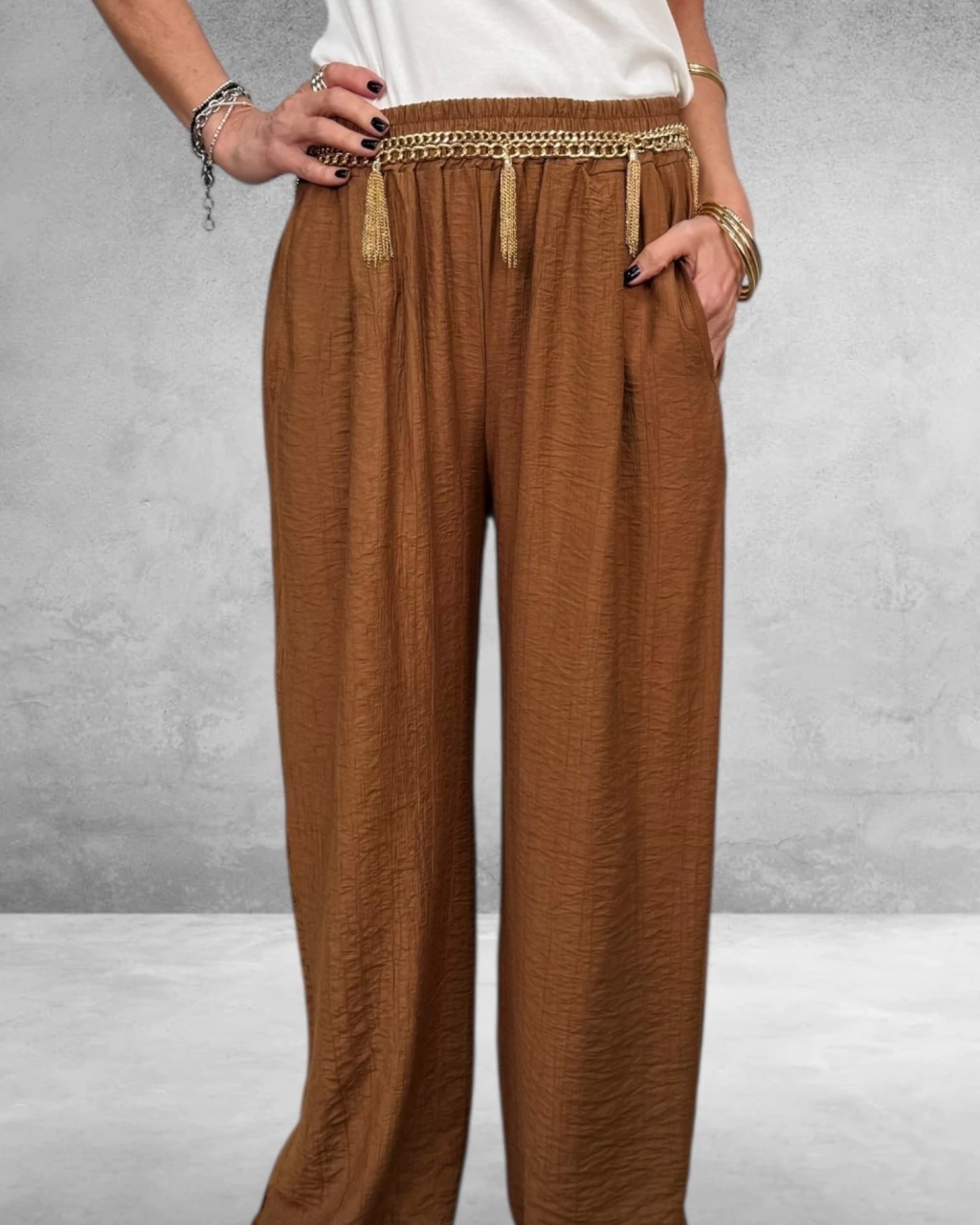 El Cinturón Cadena es el toque final perfecto para elevar tus looks, aportando un estilo moderno y sofisticado. Su diseño en cadena dorada lo convierte en un accesorio versátil, ideal para combinar tanto con prendas casuales como para realzar tus outfits de noche y ocasiones especiales.