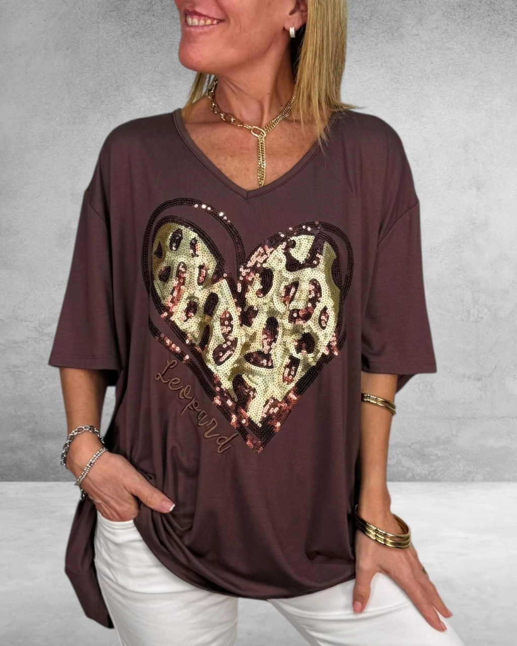 La Remera Love es la elección perfecta para destacar tu estilo. Confeccionada en algodón suave, presenta un delicado cuello en V y un elegante bordado de lentejuelas en la delantera. Ideal para looks modernos y luminosos, es una prenda versátil y femenina, perfecta para cualquier ocasión.